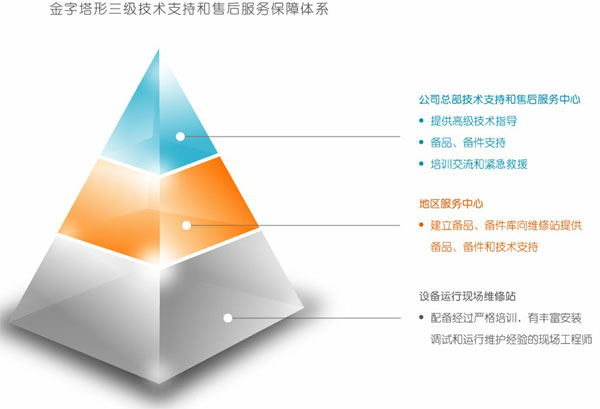 滿足客戶要求,并提供全面的技術(shù)支持和服務(wù),是公司服務(wù)的宗旨。公司根據(jù)實(shí)際情況,建立起金字塔形的三級技術(shù)支持和售后服務(wù)保障體系。為保證設(shè)備良好運(yùn)行提供最大程度的便利。